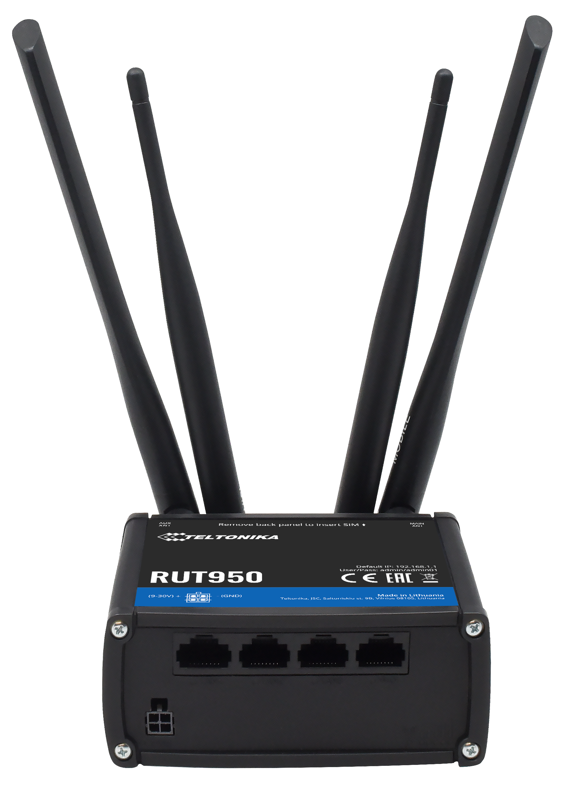 RUT950 istifadəçilərə simsiz bağlantı təqdim edir və fasiləsiz məlumat ötürülməsi tələb olunan biznes sahələrində tətbiq olunur. Sadə sazlama və istifadəsi, həmçinin vahid RutOS əməliyyat sistemi sayəsində TELTONIKA RUT950 marşrutizatoru ən tələbkar mobil şəbəkə tətbiqlərinin inteqrasiyası üçün maksimal effektivlik təmin edir.